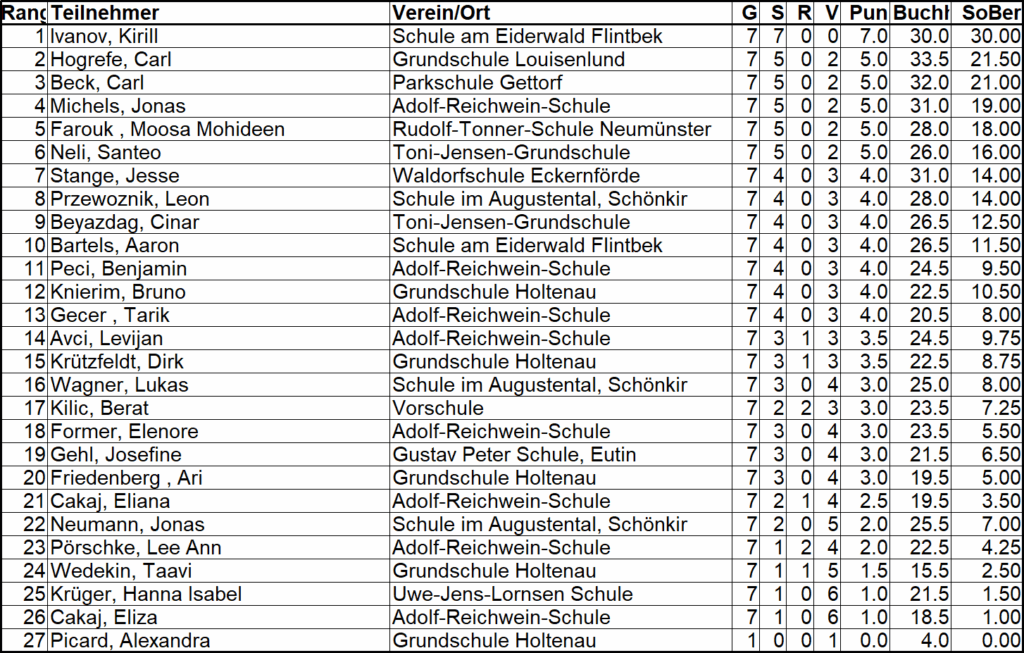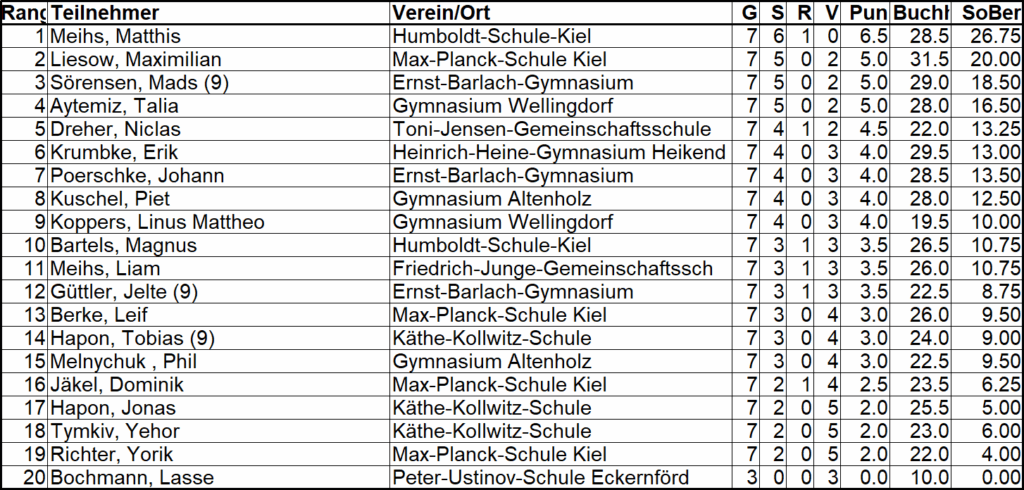 Die Plätze 2-6 wurden hatten alle 5 Punkte und wurden aufgrund der Buchholz-Wertung entschieden. Also auch mit Jonas, Moosa und Santeo ist dieses Jahr zu rechnen.