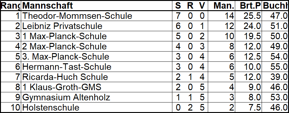 Mit sieben Mannschaftssiegen konnte die Theodor-Mommsen-Schule sich den Pokal sichern.